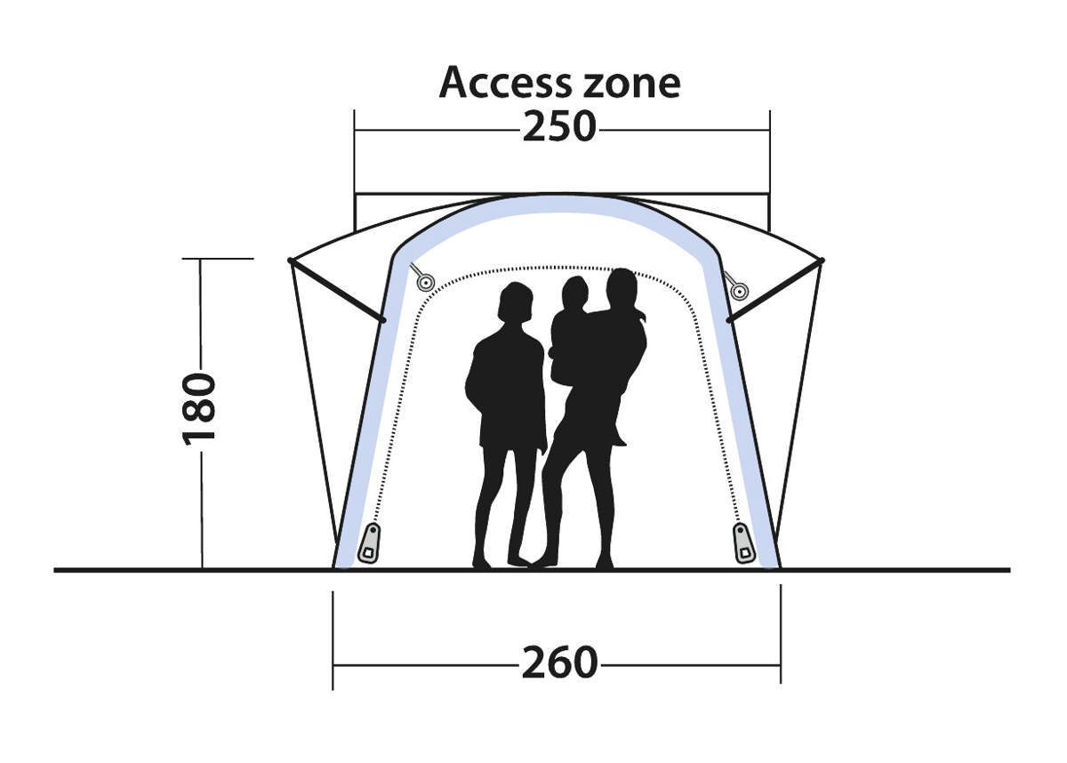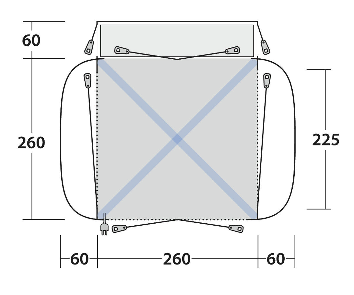 Vær opmærksom på, at solens ultraviolette stråler kan beskadige oversejlet på teltet, hvis det er udsat for længere tids placering direkte i solen. Outtex® materialet, som anvendes på Outwell telte, forlænger teltets levetid.