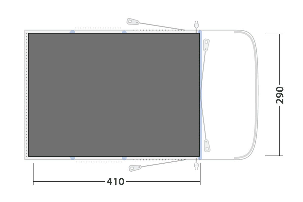 - Grâce à ce tapis de protection extérieur très pratique, le tapis de sol de votre tente restera propre et sera protégé contre l'abrasion et les dommages. Il isolera également de l'humidité du sol. Il convient que le tapis de protection extérieur soit entièrement couvert par la tente afin d'empêcher que la pluie ne s'écoule dessous.