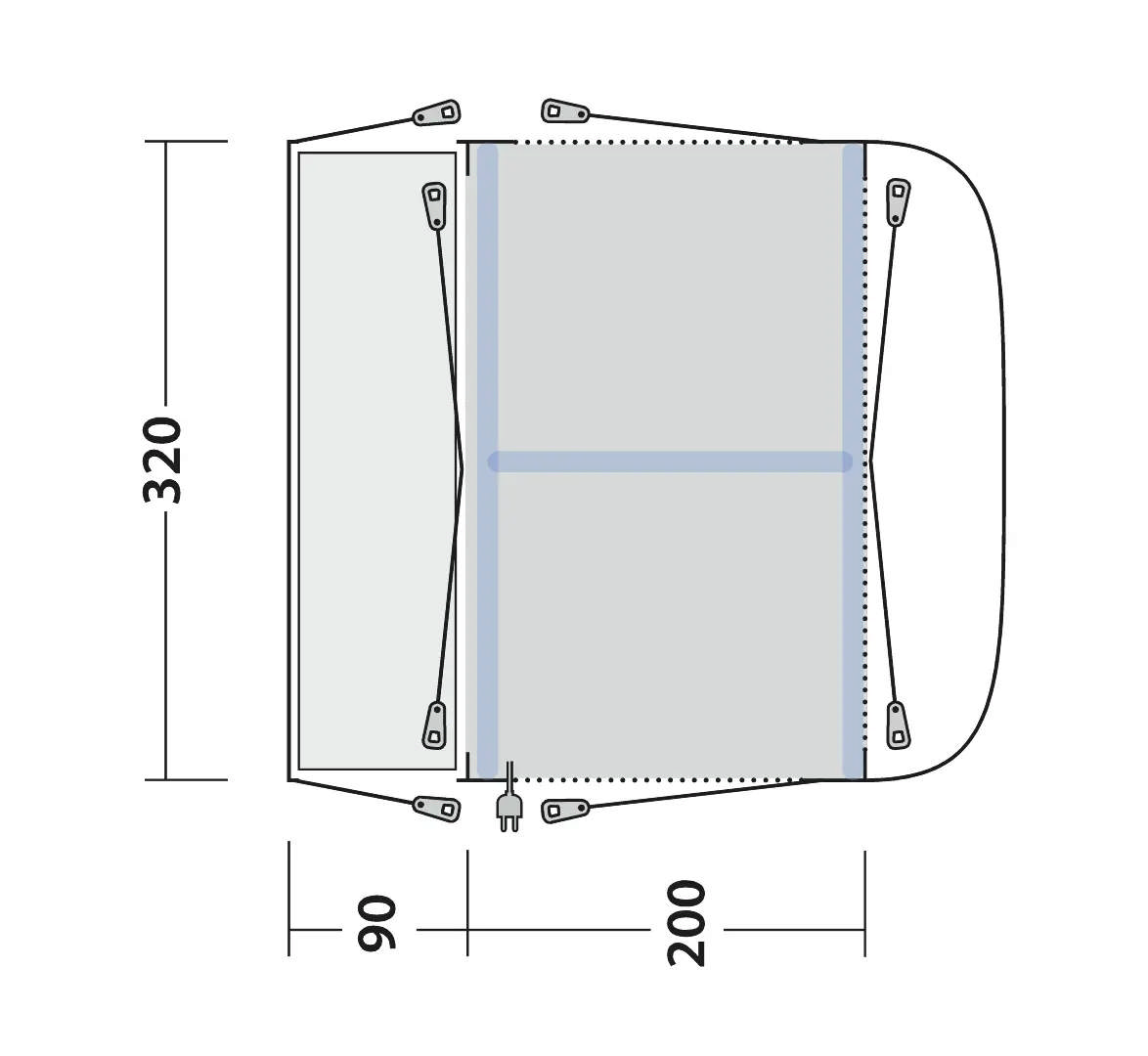 • Heavy duty Outwell zips are easy to use, running securely and freely