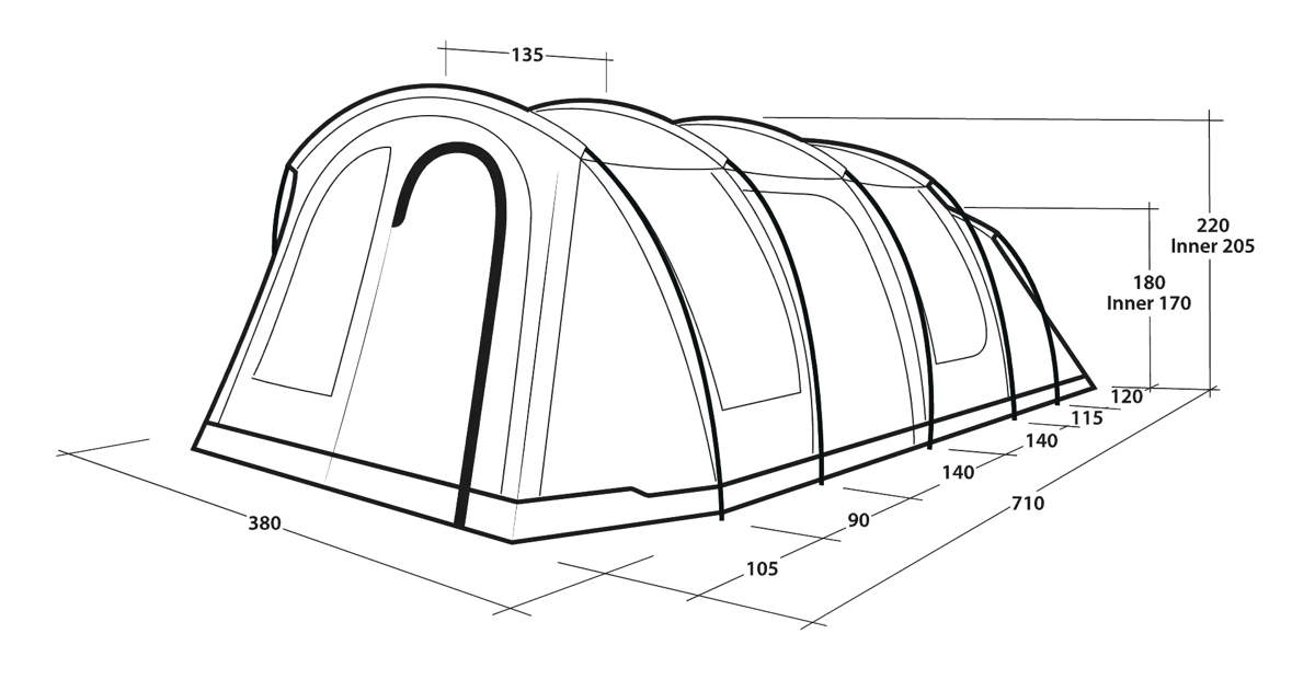 - Six room tunnel tent
