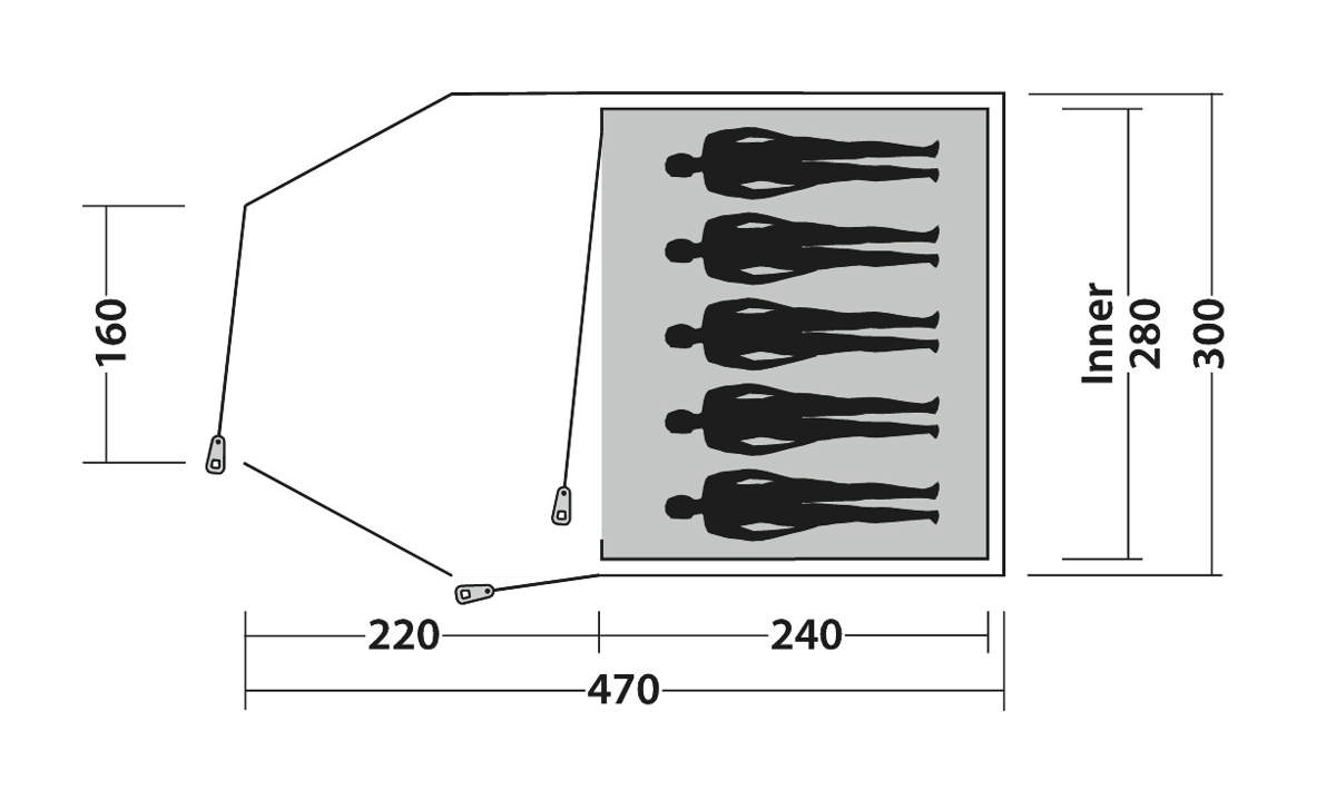- The Messina 500 dome tent sleeps five. The good living area and bedroom combined with the small pack size makes this tent ideal for young families or friends touring in a small car. The tent features a large, versatile porch or storage area with a front and side door. A Sleep-Tight inner tent ensures campers get a good night’s sleep and rainproof air vents at the top and front aid ventilation.