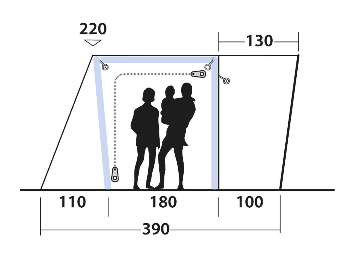 • Heavy duty Outwell zips are easy to use, running securely and freely