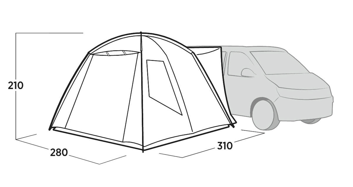 Pre-angled fibreglass poles maximise the space and headroom of the Utne drive-away awning. Fitting snugly to most vehicles with a height of 180–205cm, it can be quickly and easily attached or detached to be left freestanding. Above the large front door, weatherproof ventilation opposite the vehicle access door offers airflow, while a toggle-up detachable groundsheet and large side window add flexibility. The awning is also compatible with the Twinflower Tent Light (sold separately) for convenient lighting.